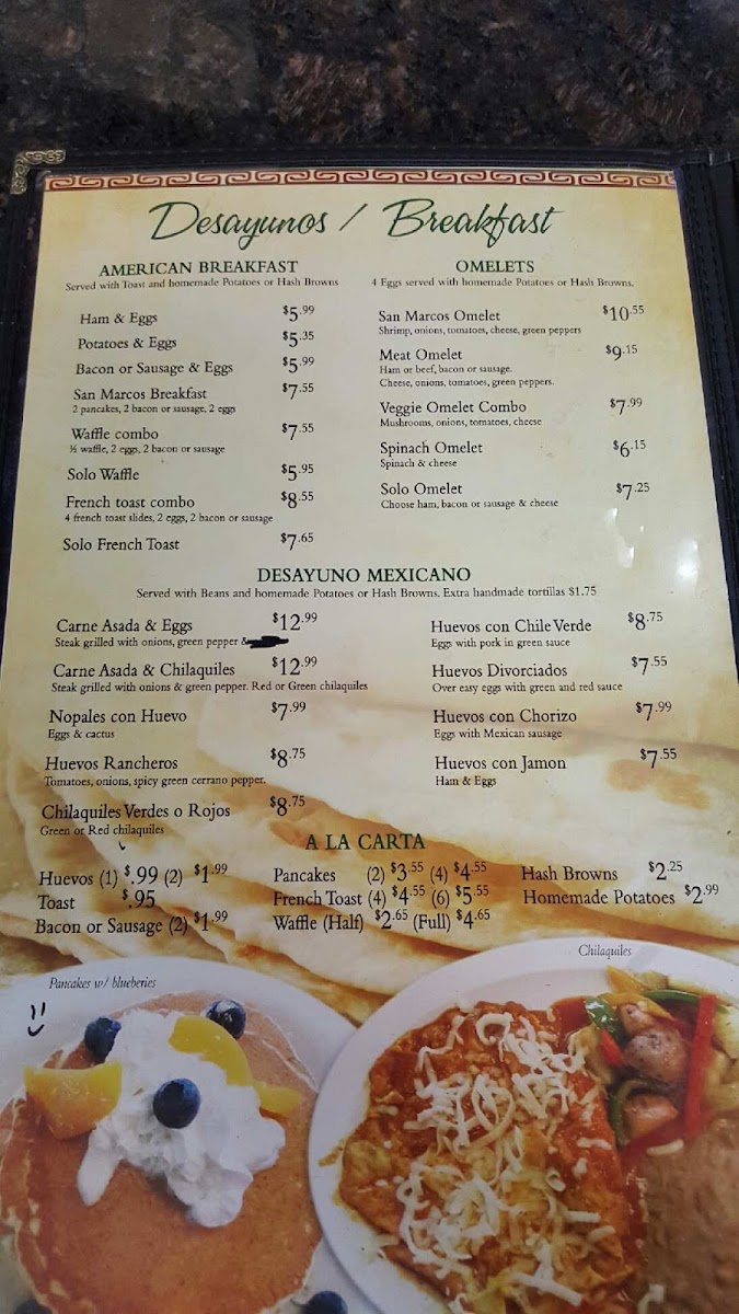 Chilaquiles. .rojos o verdes ) bistec , 2 huevos al gusto .frijoles fritos ,, Queso fresco , crema. ( cebolla opcional. Al ordenar )